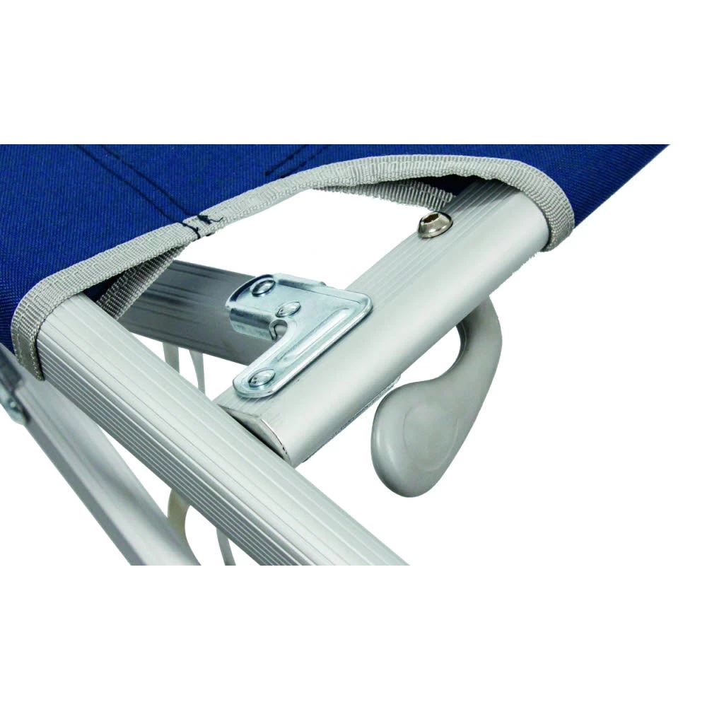 Feldbett mit extra großen Abmessungen. Gestell aus eloxiertem Aluminium.