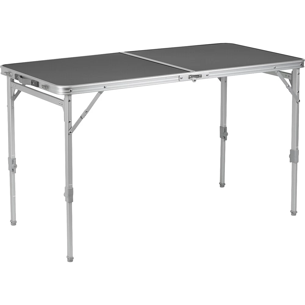 Hochwertiger Outdoor-Tisch mit wetterfester Klapptischplatte und leichtem, höhenverstellbarem Gestell aus eloxiertem Aluminium. Im zusammengeklappten Zustand sehr kompakt verstaubar und somit ideal für Kleinbusse, Vans und Wohnmobile.