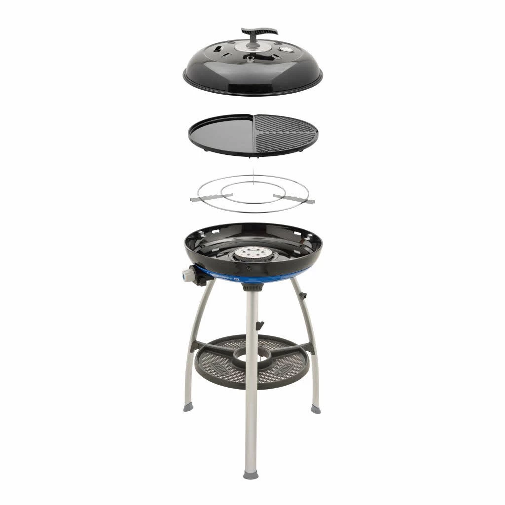 Der Carri Chef 50 ist einfach aufzubauen, einfach zu bedienen, leicht zu reinigen und kompakt zu verstauen. Der leistungsstarke, runde Edelstahlbrenner mit Piezozündung bietet eine fein einstellbare Temperaturregelung mit erstklassigen Ergebnissen auf dem Grill. Mit geschlossenem Deckel für indirektes Grillen in der Ofenfunktion oder offen für Grillen auf der BBQ/Plancha (Durchmesser: 46 cm). Der Deckel hat eine empfindliche Temperaturanzeige, die Ihnen das Rösten oder Backen ermöglicht.