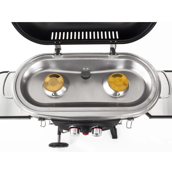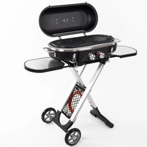 Hochwertiges Design und Trolley-System sorgen für ein schönes Grillerlebnis ohne großen Aufwand. Dank den 2 Kochablagen kann das Grillgut vorerst abgestellt oder weiterbearbeitet werden, bevor es serviert wird. Die Netzablage ist optimal zum ablegen des unbenutzten Zubehörs. Mit optional erhätlichem Untergestell ist der Grill auch als Tischgrill nutzbar.