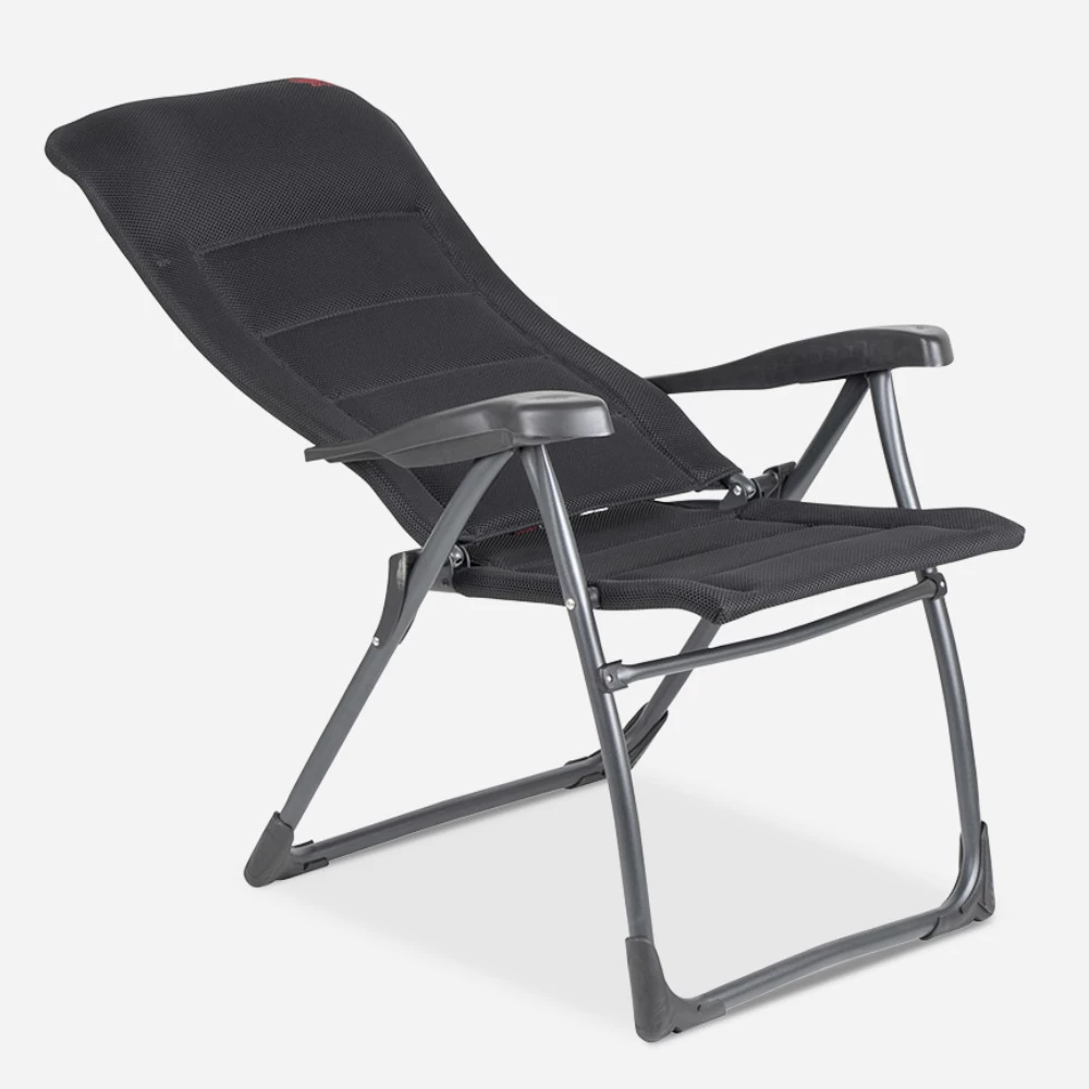 Ein leichter und besonders stabiler Stuhl. Dieser Stuhl bietet dank der in 7 Stufen verstellbaren Rückenlehne und dem gepolsterten 3D-Stoff maximalen Komfort. Die komfortable Polsterung des Stoffs ist besonders luftdurchlässig und hält, aufgrund der offenen Zellstruktur, keine Feuchtigkeit zurück. Dadurch trocknet dieser Stuhl deutlich schneller als Stühle mit herkömmlicher Schaumstoffpolsterung. Zudem sind die Rückenlehne, die Sitzfläche und die Armlehnen ergonomisch geformt.