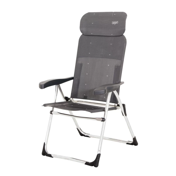 Die ergonomische Rückenlehne, mit ausziehbarem Kopfteil, ist 7-fach verstellbar. Die 3D Air-Elegant Polsterung bietet einen hohen Komfort. Dank extra flachem Packmaß kann der Stuhl platzsparend transportiert werden.