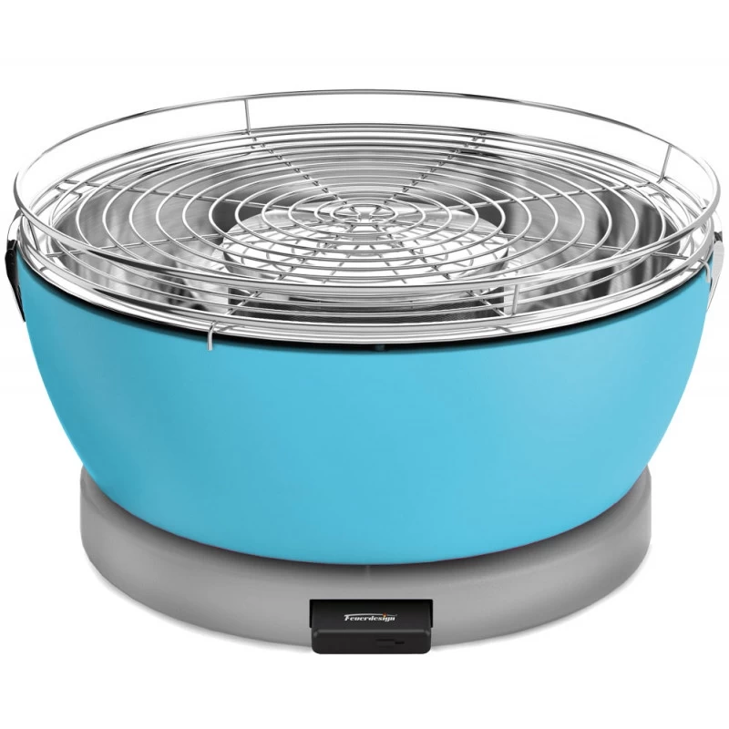 Herausnehmbares, akku-betriebenes Lüfter-Modul (wiederaufladbar über Micro-USB Kabel), 3-stufig regelbar für schnelles Anzünden und optimale Grilltemperatur – bis zu 4 h Laufzeit. Brennkorb (max. 250 g Holzkohle) mit separatem Deckel schützt die Kohle vom abtropfenden Fett. Brenndauer je nach Holzkohleart zwischen 40 und 60 Minuten (Empfehlung: Buchen-Holzkohle). Die Kohle kann während des Grillens jederzeit nachgefüllt werden.